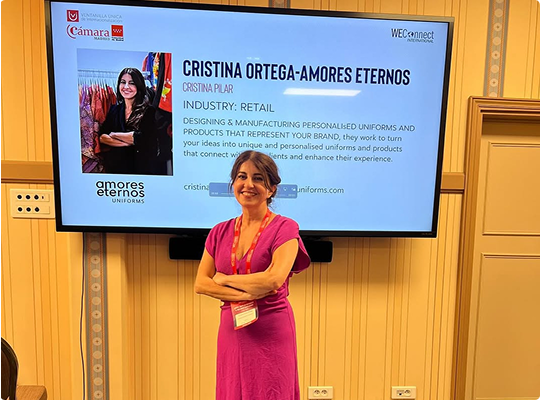Amores Eternos Uniformes es propiedad de Cristina Ortega, una mujer emprendedora, que ha pasado de dirigir una pequeña tienda de ropa a establecer una industria para el sector de la hostelería.